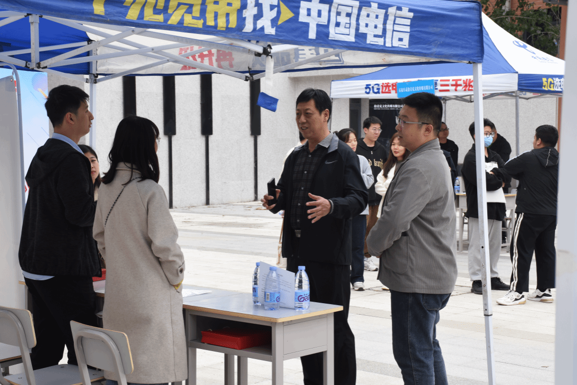 在招聘会现场常书记于用人单位、毕业生深入交流,向用人单位了解今年招聘情况、对学校毕业生的评价等,询问同学们求职意向,并鼓励员工们抓住机遇。本次招聘会充分发挥校园招聘主渠道作用,从以往传统的大型室内招聘会调整为“小而精、专而优”的小型室外专场招聘活动,按照专业进行细分,精准推进毕业生实现就业。