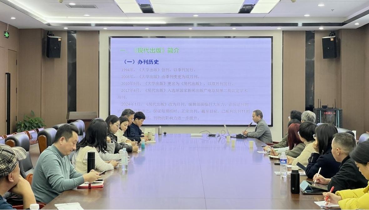 本次交流会荣幸邀请了北大、南大双核心《现代出版》编辑部张金来博士,作为主讲嘉宾。张金来凭借其丰富的编辑经验和独到的行业见解,向与会者详尽介绍了《现代出版》的选稿准则、特色栏目以及投稿的具体流程等核心信息。他着重指出,作品的创新性、学术深度及其实践应用价值是核心期刊审稿时尤为重视的几个方面,并通过生动的案例分析,巧妙地将这些关键要素融入讲解之中,使在场师生受益匪浅。