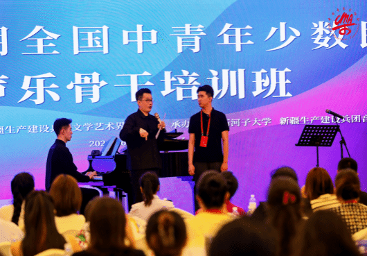 开班仪式上,来自音乐界的多位重量级嘉宾莅临现场,包括中国音乐家协会分党组书记、驻会副主席、秘书长韩新安,中国音乐家协会分党组成员、副秘书长、一级巡视员王宏,以及兵团党委宣传部副部长、兵团文联党组书记、主席潘峰勤等领导。他们共同见证了这一旨在培养少数民族声乐人才的重要时刻。